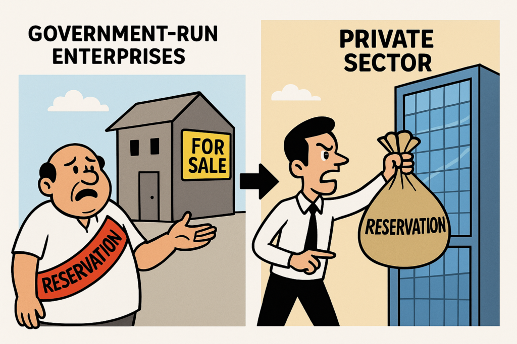 अब निजी कंपनियों पर भी ‘नीतिगत हमला’? सरकार अब निजी क्षेत्र में भी आरक्षण लागू करने की तैयारी कर रही है।उद्योग जगत इसे देश की अर्थव्यवस्था पर सबसे बड़ा प्रहार बता रहा है।