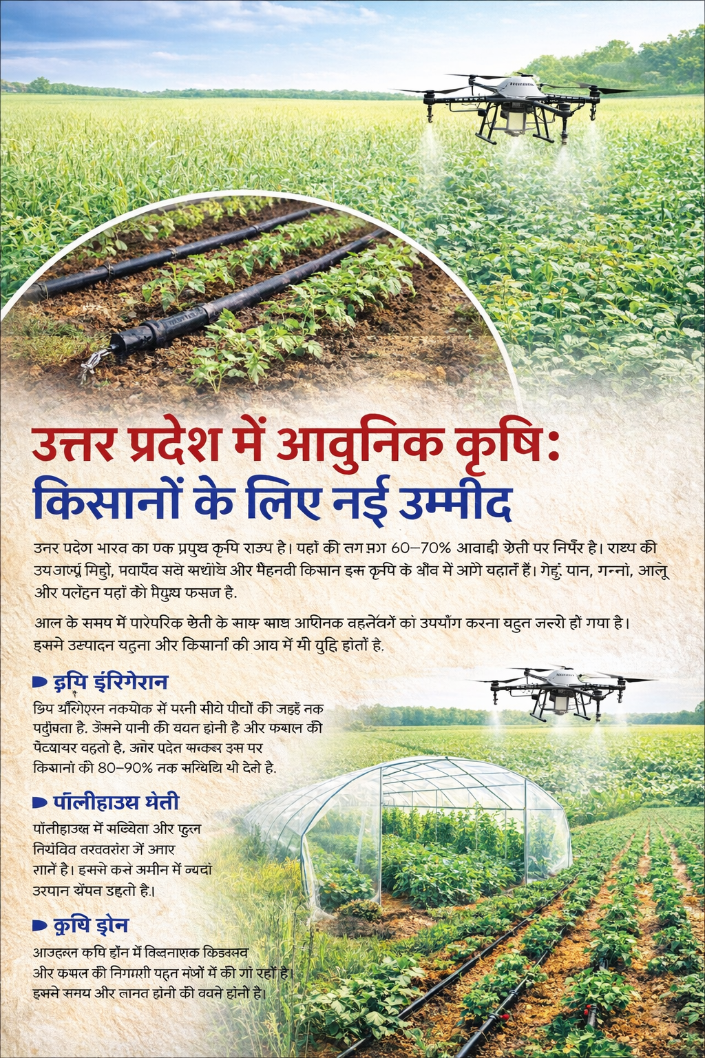 उत्तर प्रदेश भारत का एक प्रमुख कृषि राज्य है। यहाँ की लगभग 60–70% आबादी खेती पर निर्भर है। राज्य की