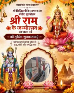 नवरात्रि के नवम दिवस पर माँ सिद्धिदात्री के आगमन और मर्यादा पुरुषोत्तम श्री राम *के जन्मोत्सव का पावन पर्व की हार्दिक शुभकामनाएँ।