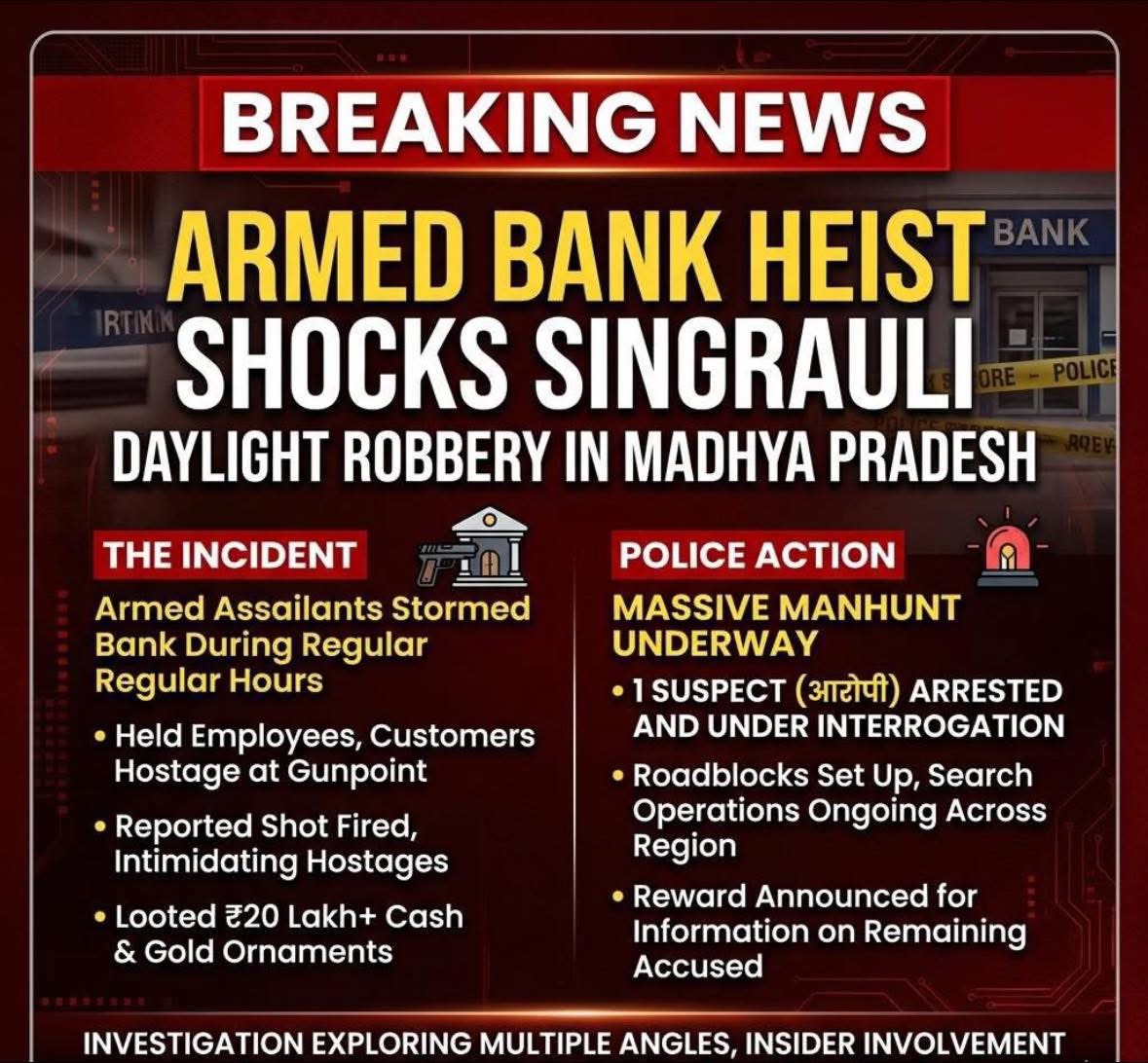 Singrauli | Correspondent A bank robbery was reported during daytime hours in Singrauli district of Madhya Pradesh, where a group